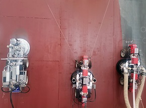 采用爬壁機器人對船舶進行除銹施工,一臺機器人相當于6個工人連續(xù)工作9個小時,有效減少船舶停航時間,機器人本身強大的附壁行走能力,可攜帶120~200 kg重量靈活移動,并具有一定的曲面越障能力,可以使機器人輕松應(yīng)對船體凹凸不平表面及曲面,實現(xiàn)對船體、船底、船頭、船舷等位置的除銹清洗作業(yè),確保對船體各個部位的徹底除銹。[查看詳情]