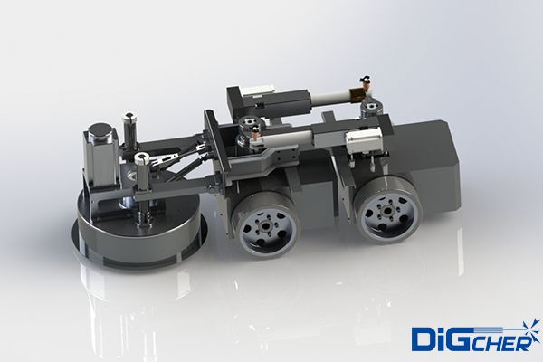 機器人采用四輪驅動,負載能力強,可在在垂直面及天花板面任意行走;電機驅動,具有穩(wěn)定可靠的立面吸附措施;機器人前端的毛刷盤負責清理和回收模板表面的粉塵和殘渣。